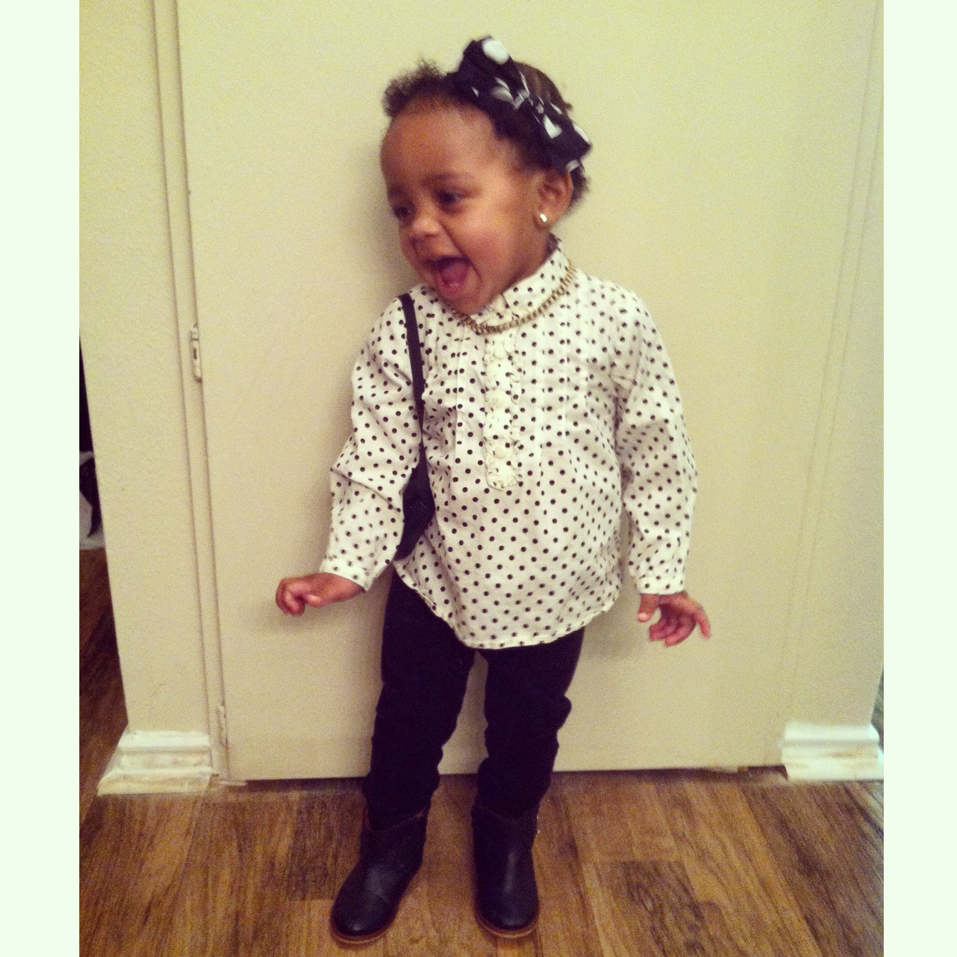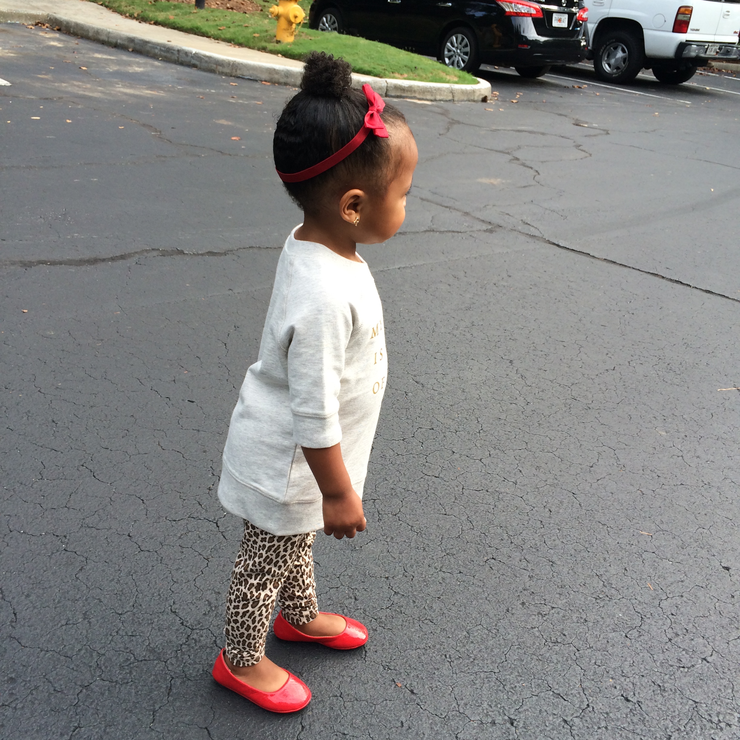 3. Have no shame- You guys, we have got to be set free from chasing labels, especially for children who will tear it up or stain it in a matter of minutes. With that being said, there is NO SHAME in my game when I waltz right up into Walmart, Target, or wherever else and find some really cute items! For example, I either make or buy Rae’s hairbows (see the white one above in her hair) from Walmart (they’re exactly $1 for the large ones I like). The little red flats in the picture collage above? I bought those for no more than $5 from a hair store. The cheetah print cardigan she’s wearing in the collage above was from Walmart. The little black “Chanel” purse she has in her hands in the top left photo of both collages above? On sale at Target for $5. She’s wearing a black-grey scarf in the first photo collage- I got that from the dollar rack at Target for $3.