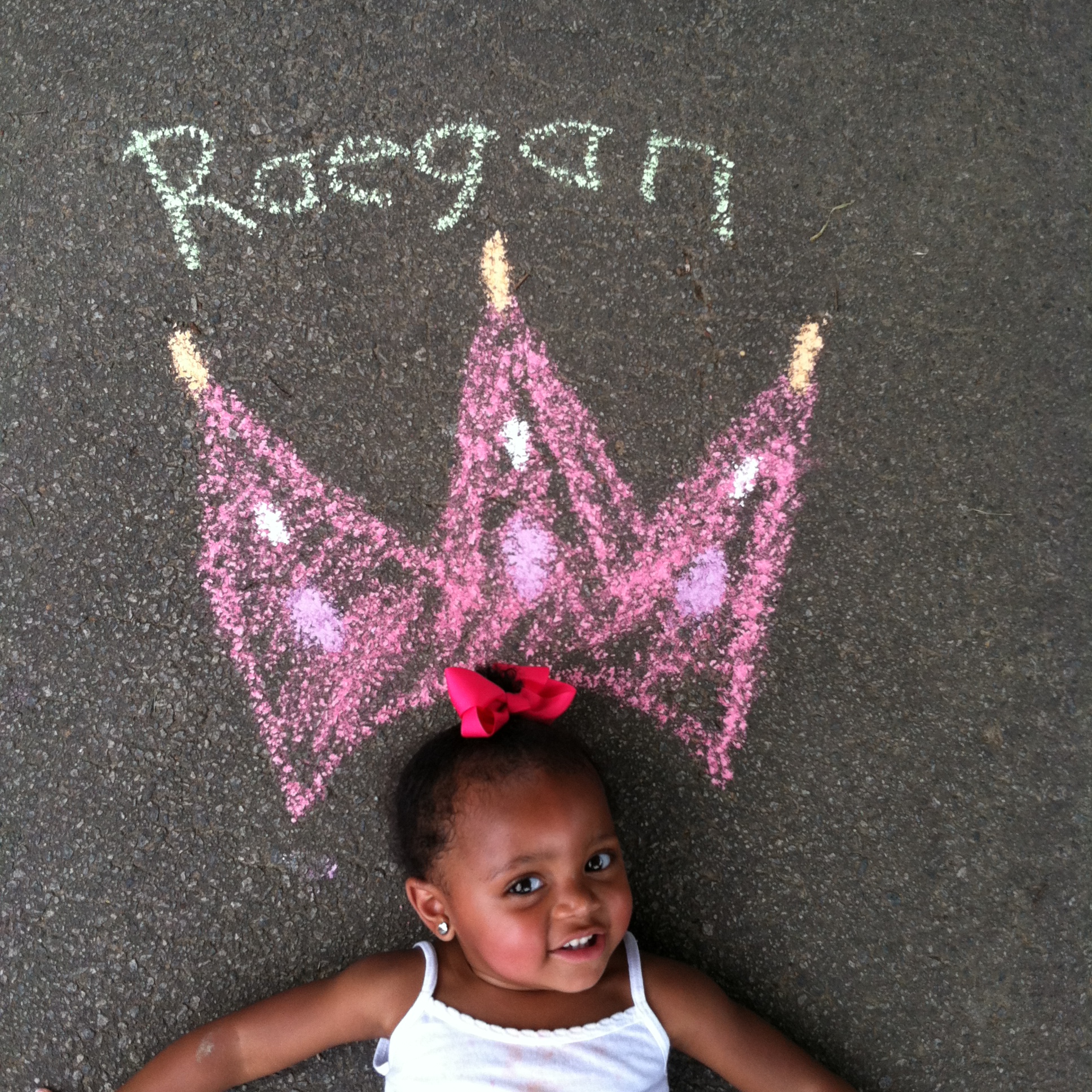 - Chalk– This seems so old school, but really it was fun with her since everything was so new and exciting to her one and a half year old mind at the time! She really liked the crown I drew her.